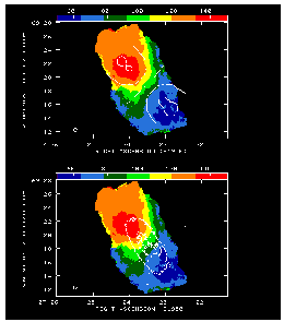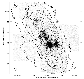 smoothed 14x14 pixels. The inner contour is of a surface brightness level of