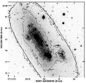 The contour is of the V-band image of the galaxy smoothed