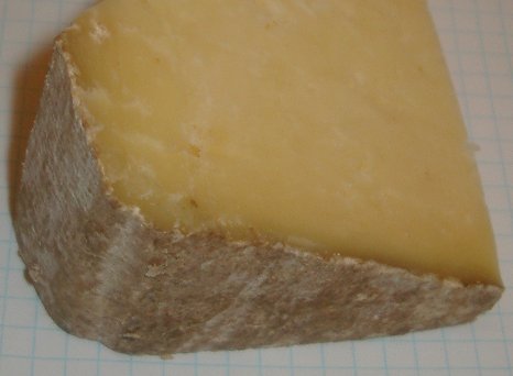 from raw cow's milk. Curds pressed to give a firm texture. Hard, dry