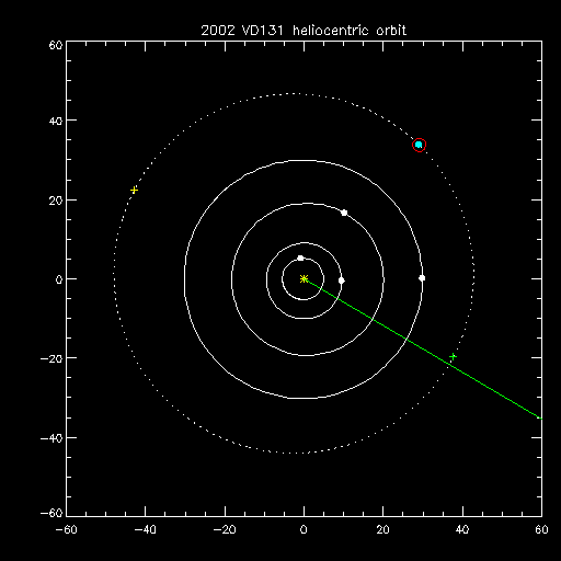 | <a> = 45.43 (AU) | V = 23.4 (V2 = 24.2) | Uncertainty = 0.6 (arcsec) |