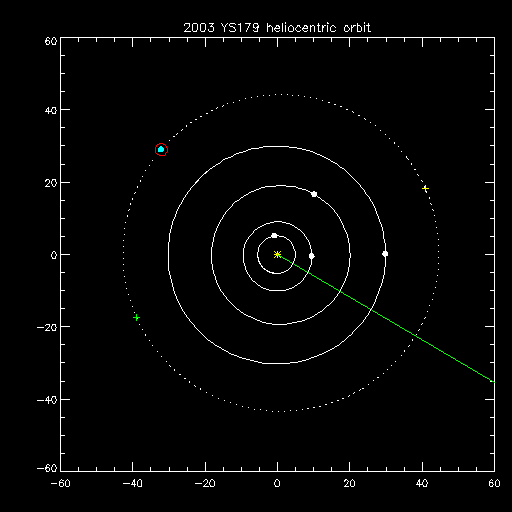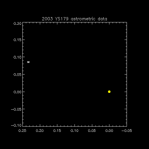 | <a> = 43.64 (AU) | V = 23.5 (V2 = 24.4) | Uncertainty = 0.1 (arcsec) |