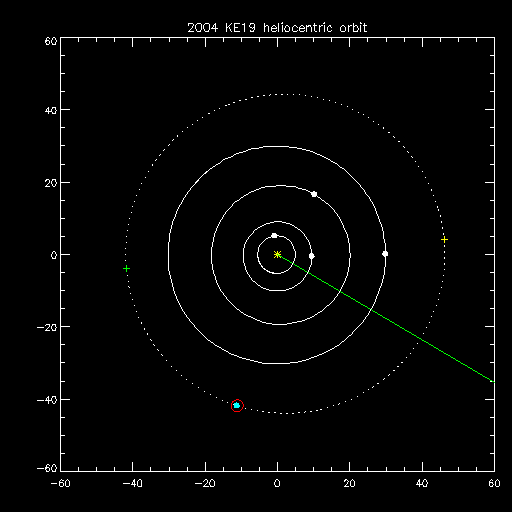 | <a> = 44.42 (AU) | V = 23.0 (V2 = 24.3) | Uncertainty = 0.2 (arcsec) |