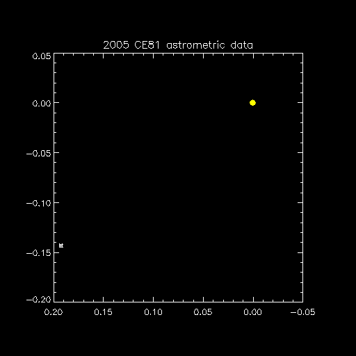 | <a> = 42.77 (AU) | V = 23.7 (V2 = 24.5) | Uncertainty = 0.2 (arcsec) |