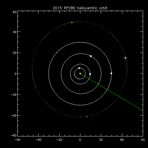 | <a> = 45.48 (AU) | V = 24.2 (V2 = 25.3) | Uncertainty = 0.4 (arcsec) |