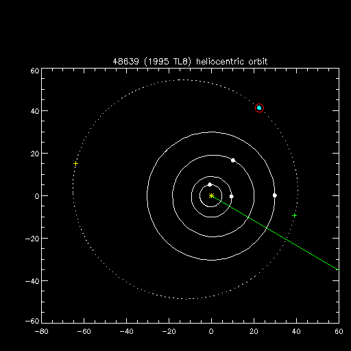 | <a> = 52.59 (AU) | V = 21.9 (V2 = 23.8) | Uncertainty = 0.1 (arcsec) |