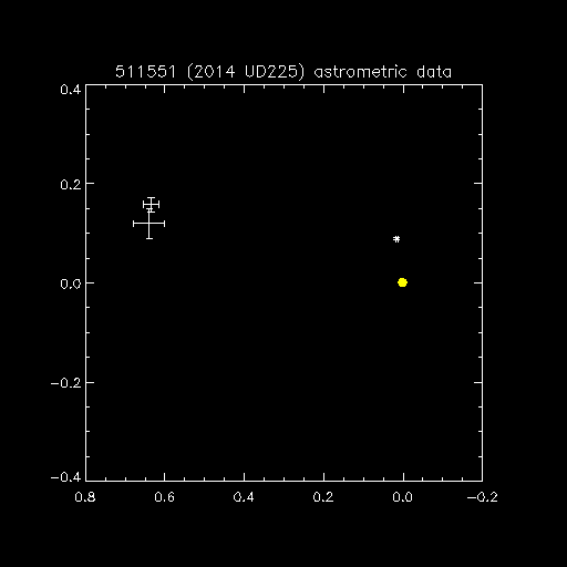 | <a> = 43.41 (AU) | V = 23.8 (V2 = 25.9) | Uncertainty = 0.1 (arcsec) |